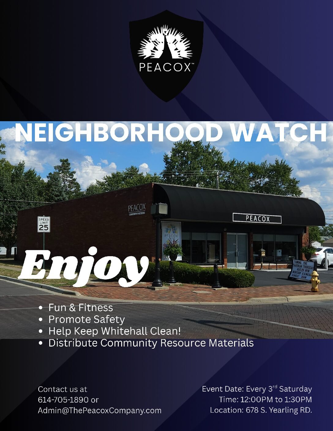 Fun & Fitness Promote Safety Help keep Whitehall Clean! Distribute Community Resource Materials |